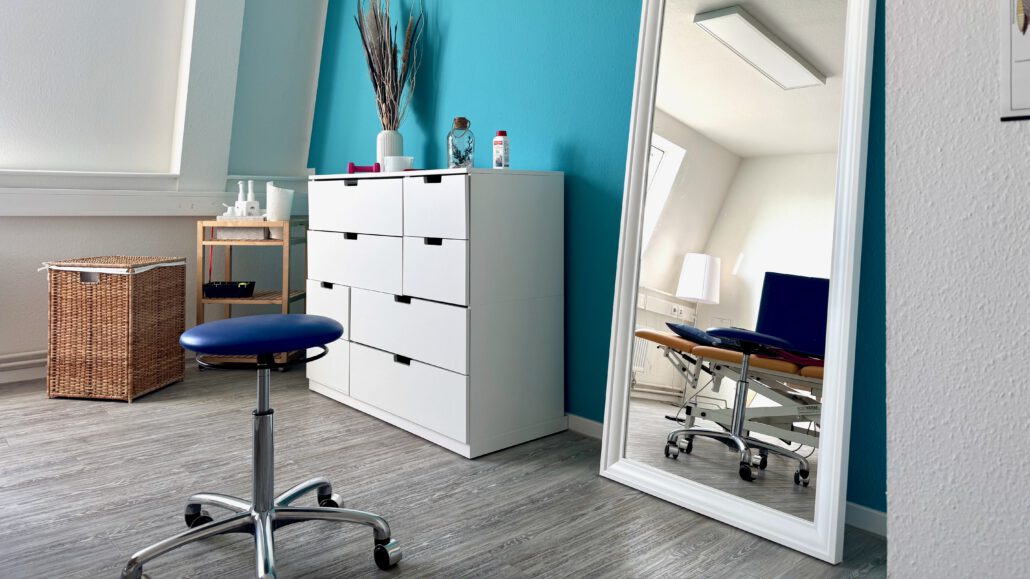 In unserer Praxis am Dornbergsweg vereinen wir Physiotherapie, Ergotherapie und unseren Kursbereich unter einem Dach. Die hellen, modernen und klimatisierten Räume schaffen eine angenehme Atmosphäre für Therapie und Kurse. Hier finden sowohl Therapieehandlungen als auch unsere Kurs- und Wellnessangebote statt.